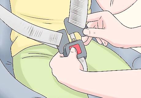 Fasten your child securely in the car seat. The car seat's belts should sit snug, firm, and flat across your child's chest. They should not be able to move more than 1 inch (2.5 cm) in any direction. However, they should also not be so restrictive that they cause marks or other signs of discomfort. Refer to the child car seat user manual to verify the proper seat belt path. Attend a local car seat workshop if you are unsure about the proper car seat placement and seat belt configuration. You can often find these workshops at local emergency service centers or fire departments.