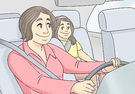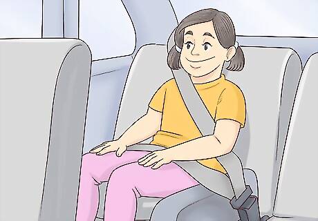 Fasten your child's seat belt before every ride. Seat belts are just as important for kids as they are for adults. If your child uses a car seat, always fasten the car seat restraints. If your child has moved out of car seats, make sure they are in a seat that has a three-point seat belt. A three-point seat belt is a seat belt that crosses over the child's shoulder, as well as their lap. In most newer vehicles, all seats have three-point belts except perhaps the back middle seat. Every child should have their own seat belt. Never share seatbelts.