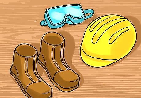 Wear protective equipment. Protect your eyes with OSHA approved safety glasses or goggles. Protect your hearing with ear plugs or ear protectors. Protect your head by wearing an hard hat. Protect your feet by wearing steel-toed safety shoes or boots. Don’t wear baggy clothes, jewelry or loose belts or scarves.