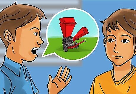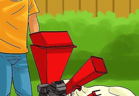 Purchase a small wood chipper. A small chipper designed for backyard use can be a good investment, especially if you regularly prune trees and shrubs on your property. If you don’t chip the wood, you’ll have to haul it away or pay someone else to haul it away.