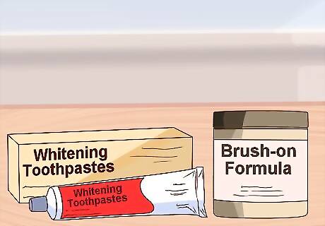 Investigate at-home treatment options. If whitening your teeth is your main concern, you can start by trying at-home treatments, which may be significantly less expensive than professional whitening. Purchase whitening toothpastes, strips, or brush-on formulas from the drug store. However, before you use a kit with a strong bleaching agent such as peroxide, you should check with your regular dentist to be sure that there isn’t an underlying issue such as decay or disease, such as hypomineralization of the enamel, that should be addressed first.