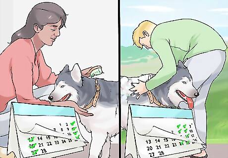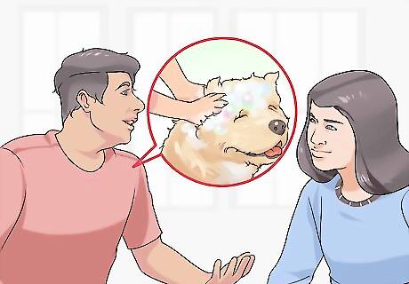 Discuss who will do what dog care. It is important that, after choosing the dog together, you care for it together as well. Make an agreement about who will do what dog care and when they will do it. This may mean that you rotate jobs on a weekly or monthly basis or that each of you has set jobs that are agreed upon. Some jobs that will need to be done include walking, feeding, grooming, and cleaning the house. Sometimes set jobs work out well, especially if one person hates a chore that the other person doesn't mind. Remember, however, that these jobs need to be agreed upon and they should be open to discussion later on if one person really wants a change.