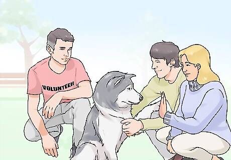 Meet potential dogs. Go to see potential dogs together. Spend some time with the dog, assessing its temperament and health, as well as the conditions it was raised in. If the dog is at a shelter or rescue organization, discuss the dog's behavior and history with workers there. Overall, get as much information as you can in addition to assessing the dog for yourself. Just because you made a list of desirable parameters together, that doesn't mean that one of you gets to make the final decision alone. Instead, you should work as a team throughout the entire process of adopting a dog.