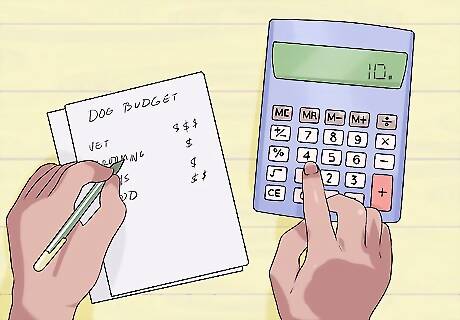 Create a budget for dog care. It can be very exciting to get a new dog and, in some cases, this means spoiling it silly. In order to avoid this, make a budget of how much you will spend on the dog and what you will spend your money on. Remember to include a budget for unexpected expenses, such as veterinary costs, so that you have the money set aside to care for the dog in case of emergency. You can find approximate yearly dog care costs online. It is good to start with one of these and then adjust the budget once you have the actual dog and know the actual costs involved with caring for it.