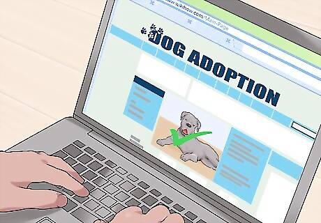 Choose a place to get a dog. Discuss whether to get a rescue dog or a dog from a breeder. Look online for organizations in your area and read their websites to narrow down your search. Looking at potential dogs online can be a fun and exciting project to do together. Not all breeders will have dogs that are immediately available for adoption. Take this into consideration if you want to adopt from a breeder. Dogs that are at a rescue organization or a shelter are largely in desperate need of a home, so you would be potentially saving a life by adopting from this type of organization.