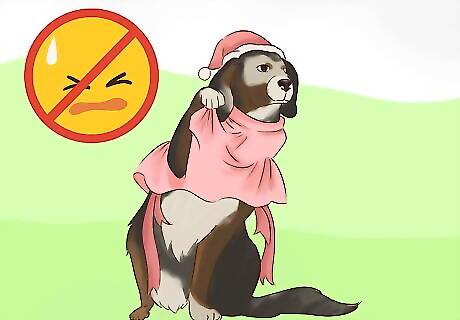 Avoid noisy costumes. Costumes with moving and noisy parts should be avoided. The noisy or moving parts can stress out your dog. If your dog is pacing or pawing at the costume excessively, these are signs that your dog is uncomfortable with the costume. Take it off immediately.