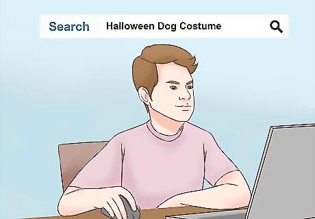 Search online. You can also search for costumes online. However, sizing can be an issue. Therefore, make sure you search well in advance since it will take time to receive, try on, and return the costume if it does not fit. Online sites are also great places to buy safety accessories for Halloween night. For example, reflective collars or glow-in-the-dark details that can help you keep track of your pet at night.
