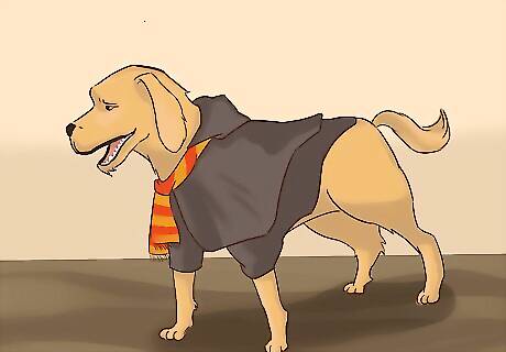 Choose the right size. By knowing your dog’s size, i.e., small, medium, or large, and weight, you can find a costume that fits your dog appropriately. Costumes that are too small can impair circulation and movement, and can cause your dog to overheat. On the other hand, costumes that are too big can cause your dog to stumble or become tangled. Try to avoid costumes with long capes. Your dog can trip or become tangled in the cape.