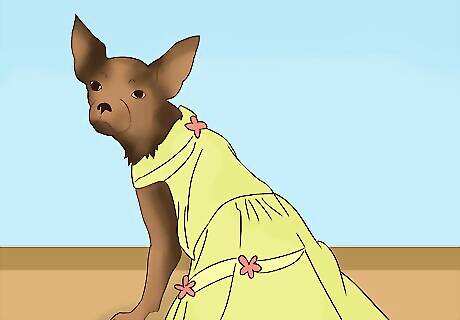 Rehearse with your dog. Before the big night, it is important that you dress your dog in the costume multiple times. This way, you can see how your dog reacts to the costume, and if it fits properly. If your dog shows signs of pacing or excessive panting, paws or claws at the costume, or refuses to move, then the costume is causing undue stress on your dog. If the costume stresses out your dog, opt to accessorize your dog instead. For example, you can buy a matching leash and collar that reflects a particular theme, a head band, or a bow tie for your dog to wear.