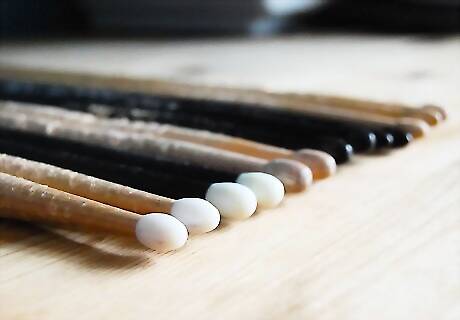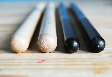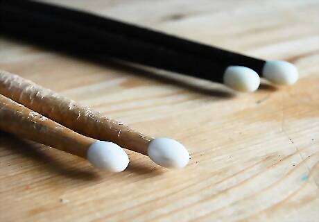 Pick the right material. Tips come in wood, nylon, or delrin. Nylon tips sound brighter on cymbals and hold up longer without chipping or developing soft spots. They don't typically change the sound of the drums, though the lighter tip weight can create a fast rebound, allowing the drum to speak easier. Delrin is used by some companies in place or nylon since it is supposedly more durable. Wooden tips have a darker contact sound and a less articulate sound on cymbals.
