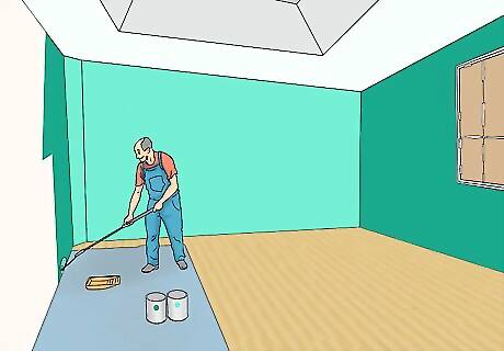 Start with the biggest, most central room when painting. This room is often the easiest to plan out. Most likely you already have an idea of how you want to paint the room. Once you settle on a color scheme, you can then begin working on adjoining rooms, coming up with colors that complement it. For instance, you might start with the living room. Think about painting it a bright color to make it big and vibrant. Then, paint adjoining rooms with more subdued colors. If you know you want to paint a room with bold colors, you can start there even if the room is small. Come up with contrasting colors for nearby rooms.