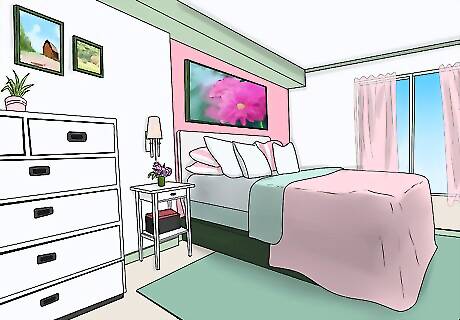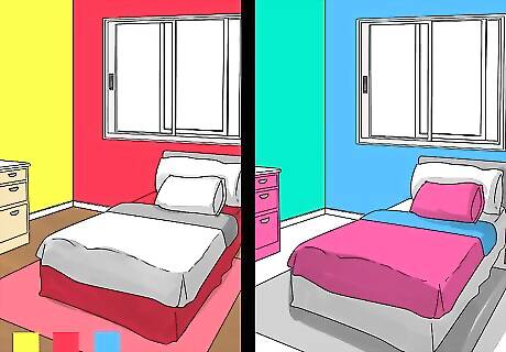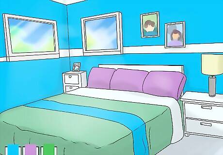 Choose cool colors to make a room relaxing. Blue, green, and purple are all cool colors. Cool colors can freshen up a room or help you calm down after a long day. They make for good choices in bedrooms and sitting rooms. Lighter shades can feel more vibrant, while darker shades can feel more soothing. For example, a light shade of blue can remind you of the water at the beach. A darker shade would feel much heavier. Cool colors can be used in rooms that feature a lot of activity. However, you may want to choose a lighter tint or offset the cool color with a neutral color, such as white. Darker cool colors, such as deep green or navy blue, can help you feel grounded in the room and give the space a cozy feeling.