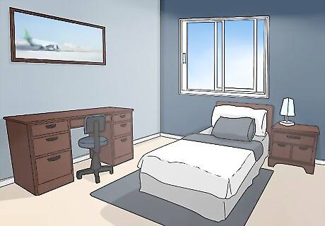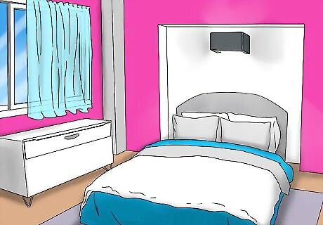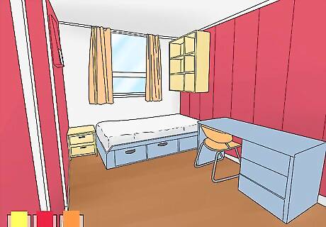Select 1 predominant color to define your room. The predominant color is your room's main color, so take some time to think about how you want the room to look. This color will likely end up on your walls. You may also want to find furniture and decorations that contain this color in order to emphasize a consistent color theme. Since the walls are the biggest color canvas in a room, starting there is easiest but not mandatory. If your predominant color is very bright, for example, you might buy accessories in that color, then paint your walls to complement it. Pick out colors that capture your attention. Any item, such as a favorite coffee mug or blanket, can provide you with colors to use.