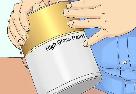 Choose a glossy paint sheen to make your paint look shinier. You can check the label on any paint you choose to see how it will affect the finish. Paints with a gloss or semi-gloss finish look a little brighter than normal. For this reason, they are often used in areas such as the kitchen. Glossy paints work best with lighter colors and are easy to renew with a new coat of paint. Satin and eggshell finishes are a little less glossy. Satin is durable and used in high-traffic areas such as a family room. Eggshell finishes are a little more delicate and can be used in low-traffic areas like your dining room. Flat or matte finishes have no shine at all. This type of paint works well with dark paint, particularly in quiet areas like bedrooms.