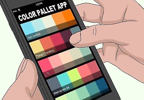 Use a paint app to help you choose your color palette. Paint apps in your phone’s app or play store can help you test different colors. A few paint manufacturers and home stores have these apps. Some of these apps allow you to upload a photo to find a matching color, such as if you want to find a matching paint for a surface you have already painted. For example, try apps like Color Grab, Project Color, or Pick-a-Paint.