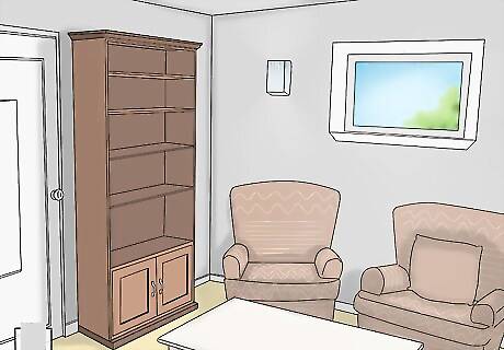 Match your paint colors to your furniture and decorations. To get a full sense of what you want the finished room to look like, imagine how you will decorate the room. Use the colors in furniture, plants, art, and other components to help settle on paint colors. Blend the colors of your items with the paint you choose to create a consistent room theme. For instance, physical items can be a part of the room’s theme. If you have blue and white furniture, for instance, paint your room a matching blue and white. Items can also be used as highlights through contrasting colors. If you have a vibrant, red painting, try painting the wall behind it a neutral or pale color. This draws attention to the painting instead of the wall. If your furniture and walls are the same color, your room may look dull and lifeless. Make sure to include at least a few decorations in different colors to keep things interesting.