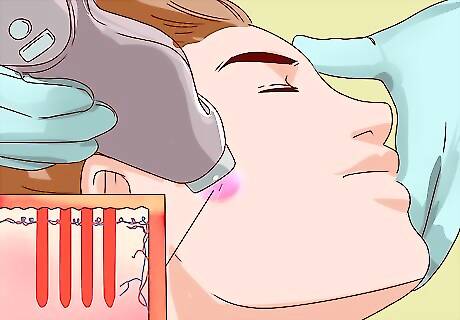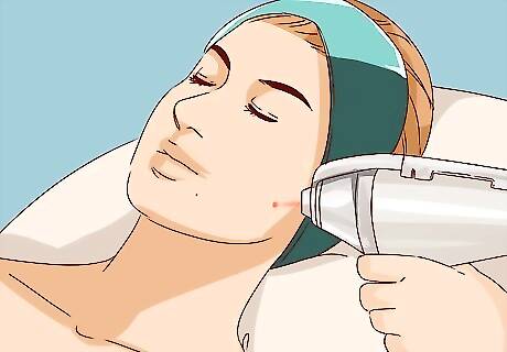 Determine if you're a good candidate for treatment. Decide if your skin type can be effectively treated by laser resurfacing. Keep in mind that laser skin resurfacing is not a permanent cure for skin problems. Still, it can set the clock back—the treatment’s good effects can last for several years. Of patients surveyed thirty months after receiving skin resurfacing, seventy-five percent were pleased with the results. Pigmentation in dark skin lends itself to absorbing more heat from the laser and is prone to side effects such as blistering or discoloration. Skin imperfections that are minor do not warrant laser skin resurfacing. Other less substantial treatments are appropriate for minor skin problems. Resurfacing is good for minor wrinkles and lines and scarring from acne. However, active acne can present problems in tolerating the process. Liver spots, sun-damaged skin, aging skin and some birth marks are problems that can be addressed by the laser procedure. If you scar easily, you’re not a good candidate for laser resurfacing of large areas of skin.