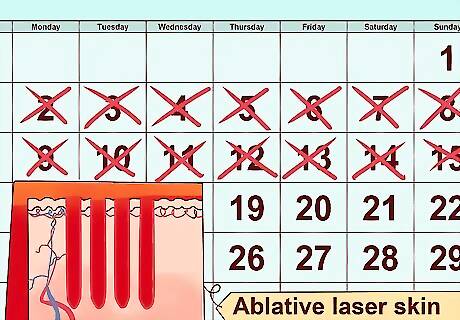 Prepare for the procedure. Many doctors think of this procedure as a type of surgery. It’s not as invasive as conventional surgery, but still requires preparation. Laser skin resurfacing can also have a fairly lengthy recovery process depending on which laser treatment you select. You may be told to refrain from taking medications prior to the procedure. The doctor may ask you not to take vitamin E. You may be given special creams to apply to your skin a few weeks before the resurfacing. An antiviral medication may be prescribed if you’ve suffered from herpes. Your doctor will advise you to refrain from excessive sun exposure. Smokers will have to stop two weeks before the resurfacing date, as smoking extends the healing period. Line up someone who can drive you home from the treatment facility and stay with you on the night of the procedure.