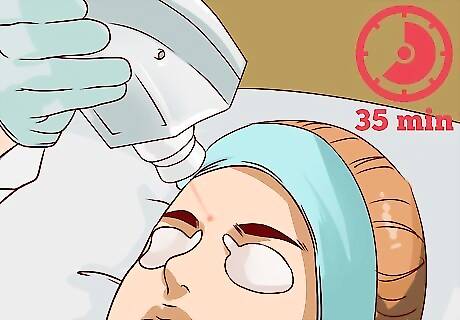 Know what to expect from the procedure. The procedure will most likely be performed in the physician's office. It also could be performed in a hospital or ambulatory facility. Laser skin resurfacing is an outpatient procedure. The doctor may provide you with eye shields before the procedure begins. Your heart, blood pressure and pulse may be monitored during the procedure. Small areas of skin are numbed with a local anesthetic . If larger areas of skin are being resurfaced, you might receive a general anesthetic . The time range for the treatment is between 35 minutes and 2 hours, depending on how much of the skin is being resurfaced.