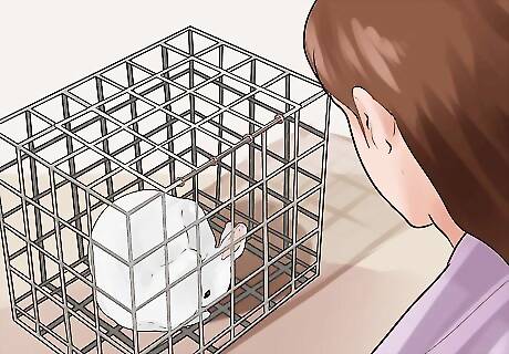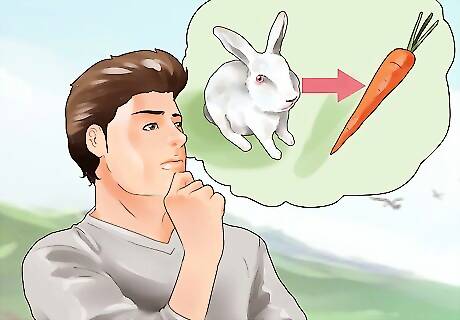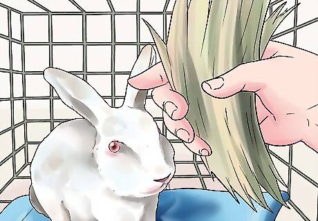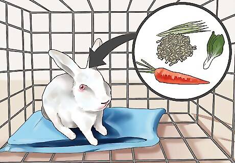 Keep clean grass hay available to your rabbit at all times. In addition to giving the rabbit something to chew on, grass hay is vital to maintain a rabbit's intestinal health. Never let your rabbit go without hay. Alfalfa and clover hay is too high in protein and calcium to feed to a rabbit. This type of hay should only be used as a treat.