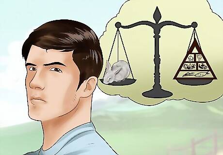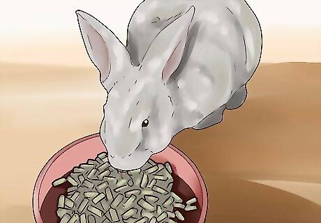 Feed your rabbit fresh pellets daily. These are produced to be completely nutritionally balanced. Adult rabbits should have from 1/8 to ½ cup daily, depending on their size. If you don't limit the amount of pellets a rabbit eats, it may become obese. It could also have other health conditions, as it may choose pellets over grass or hay and it needs grass or hay for proper digestion. Throw out any uneaten or spoiled pellets every day before putting fresh pellets in the rabbit's dish.