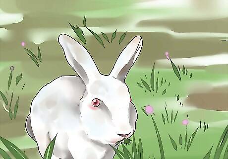 Allow your rabbit access to fresh grass. Fresh grass is good for a rabbit. You can set up a pen outside on your lawn for your rabbit to graze or you can clip grass with a scissors (don't use lawn mower trimmings) and give it to your rabbit to eat. Make sure there has been no chemicals used on the lawn. Fertilizers or herbicides could make your rabbit very ill.