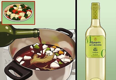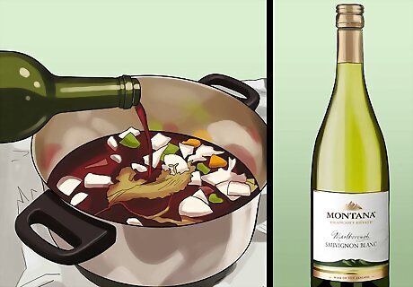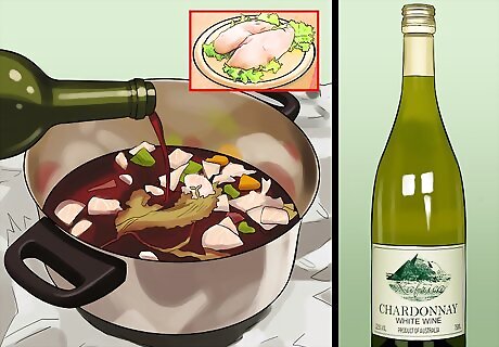 Use rich dry white wines for gravies and cream sauces. Cooking gravies and sauces can require a bit more finesse than chicken or vegetables. You’ll want to be cautious to balance the acidity of the dish. Since gravies and sauces are liquid-based dishes, you’ll also have to closely monitor how much of the wine has reduced during cooking. Some reliable varieties of Chardonnay include: Indaba Chardonnay Root 1 Chardonnay Lismore Range Chardonnay
