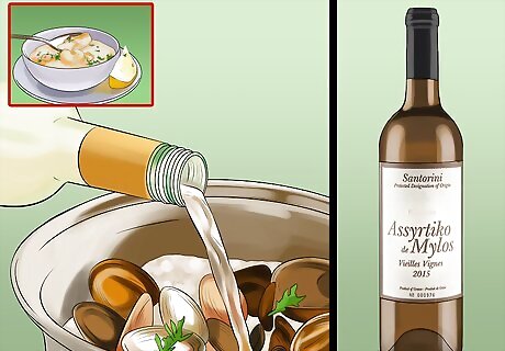 Use crisp dry white wines for seafood and shellfish. These are perfect for adding a slightly fruity or earthy flavor to your seafood dishes. A lot of more acidic wines can actually break up the fattier parts of the fish, so monitor your acidity or you’ll risk over-extracting the protein. Pinot Grigio is typically the most popular version of a crisp dry white wine.