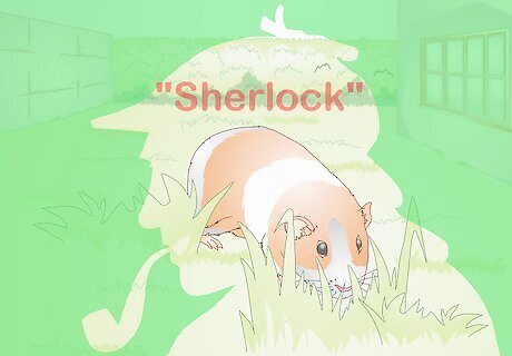 Give your guinea pig the name of a fictional character. Think of your favorite fictional characters from the books or movies that you enjoy. Picking a name of a fictional character is a great way to combine two things you love! You could name a male guinea pig Sherlock, Ichabod, or Atticus. You could name a female guinea pig Hermione, Scarlett, Pippi, or Katniss.