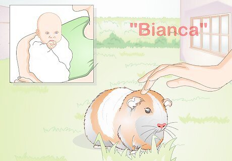 Name your guinea pig after a historical or mythical figure. Think about your favorite figures from history. These often make great pet names because they give your pet a unique tie to history. The associations these names provoke are often humorous in light of your adorable, fluffy pet. You could name your male guinea pig Moses, Hamlet, Napoleon or Dante. You could name your female guinea pig Cleopatra, Athena, or Marilyn.