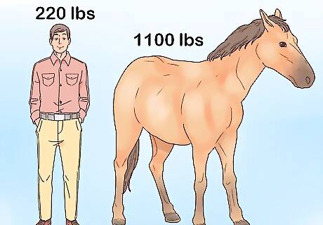 Pick a breed that is appropriate for your height and weight. Riding a horse that is ill-matched to your size will be difficult and can injure the horse. Look for a horse that is at least 5 times your weight. If you are tall, you will need a tall horse. When you sit on the horse, your feet shouldn’t dangle below the horse’s belly. For example, if you are 100 kilograms (220 lb), choose a horse that is at least 500 kilograms (1,100 lb). A pony is a good option for children and petite adults, and horses work well for adults. Czechoslovakian Small Riding Ponies are popular for children. Icelandic horses are a good option for adults. It can be difficult to judge if a horse is tall enough for you without sitting on it. Make sure to ride the horse before purchasing it to ensure that it is the right size for you.