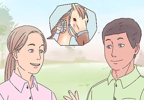 Choose a schoolmaster horse if you are a beginner rider. If you are new to riding or are inexperienced at training horses, look for an older horse that has been raised by a trainer. These horses are often called “schoolmasters.” Many schoolmaster horses have years of experience working with beginning riders. This is also a useful option for more experienced riders who don’t want to spend time training a young or unruly horse. Contact a local riding school and ask for recommendations of good schoolmaster horses in your area.
