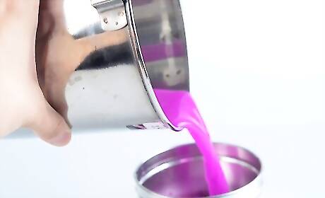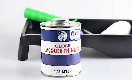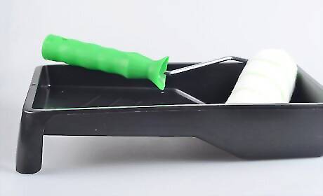 Pour mineral spirits or turpentine (also called paint thinners) into a clean roller paint pan to clean your roller brushes. Add enough thinner for it to fill the pan about 3" (7.62 cm) deep.