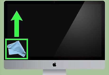 Use a microfiber cloth to wipe dust from the screen. Tilt your iMac screen upward. To stabilize the screen for cleaning, place your hand against the back of the screen near the bottom. Gently wipe the entire screen in slow circular motions. Alternatively, use the cloth that came with your iMac to wipe the screen free of dust. EXPERT TIP Jeremy Mercer Jeremy Mercer Computer Repair Technician Jeremy Mercer is the Manager and Head Technician at MacPro-LA in Los Angeles, CA. He has over ten years of experience working in electronics repair, as well as retail stores that specialize in both Mac and PC. Jeremy Mercer Jeremy Mercer Computer Repair Technician Try wiping the screen down with just the microfiber first. Computer repair technician Jeremy Mercer says: "Most of the time, you can clean the screen with just a dry microfiber cloth, because it's mostly going to just be fingerprints and things like that. If you do need more cleaning power, like if there's been a liquid spill or something greasy on the screen, use 91% rubbing alcohol or an electronics-approved screen cleaner like Screen Mom."