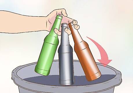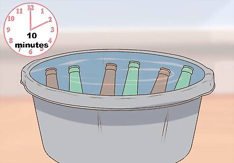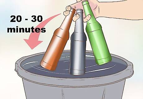Place your bottles in a gallon tub. If your bottles will not fit in a gallon tub, then use a bigger tub like a two or three gallon tub. Alternatively, you can use your sink. Place a stopper in your drain and then place your bottles in the sink.