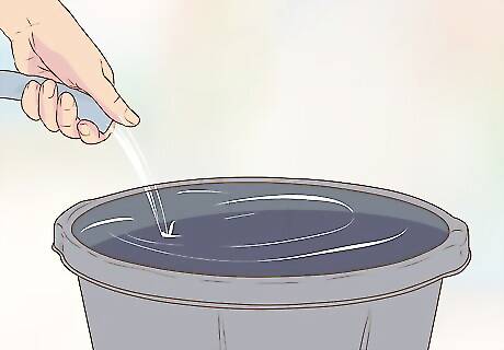 Fill a gallon tub with cold water. Then mix in one tablespoon (15 ml) of bleach for each gallon of water. Make sure the bleach you use contains 5.25 percent of sodium hypochlorite. Then mix the ingredients together until they are well-combined. For example, if you are using two gallons of water, then mix in two tablespoons of bleach. Alternatively, you can use a commercial sanitizer to sanitize the beer bottles. Just make sure to follow the dosing guidelines per the instructions on the product.