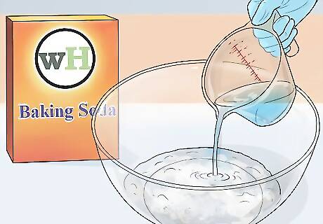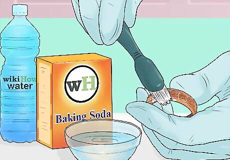 Add water to baking soda. Place the copper in a suitably sized container (or skip this part if what you're cleaning is the inside of a copper container). Dust the bottom with baking soda. Then add water, which will cause the baking soda to start fizzing. Wait for the fizzing to subside, then remove the water and scrub the copper with a sponge, cloth, or similar material. Rinse with clean water when finished and towel dry.