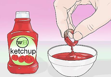 Use ketchup as a paste. Cover the copper in an even coat of ketchup. Give it about half an hour to penetrate the dirt and stains. Dampen a cloth and scrub the copper after thirty minutes. Rinse off the ketchup with clean water, then dry.