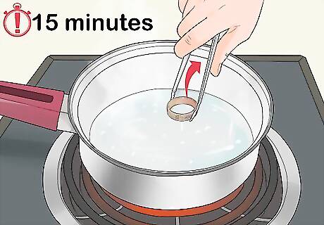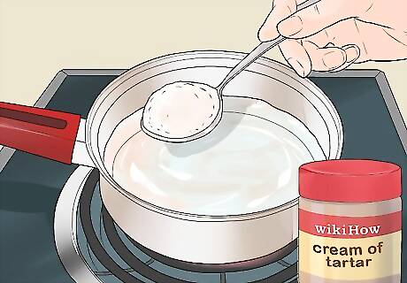 Make a cream of tartar and water bath. Bring a liter of water to boil. Stir in two tablespoons of cream of tartar. Soak your copper in the mixture once the cream of tartar has totally dissolved. Remove after two of three minutes, then scrub with a moist cloth, rinse, and dry.