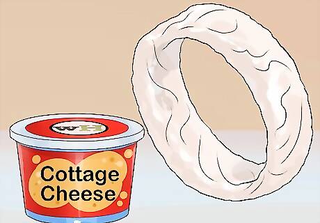 Use cottage cheese as a paste for stains. Coat the copper with an even layer of cottage cheese. Let it sit for five minutes or more. Dampen a cloth and scrub the copper, then rinse the cheese off with clean water. Repeat as needed for tougher stains.