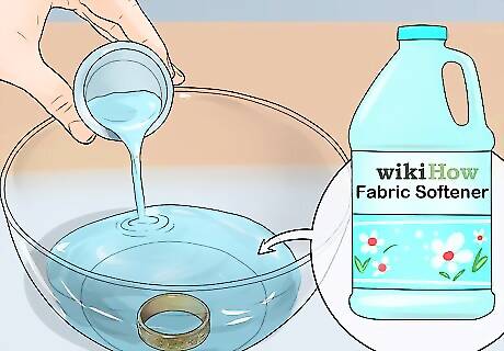 Remove stains with fabric softener. Put the copper in a container large enough to fit. Fill it with water. As you do, add a few squirts of fabric softener. Give it an hour or so to soak. Then pour the water out and scrub the copper. If the copper is cookware, be sure to wash it again with water and mild dish detergent to remove all traces of the softener before rinsing and drying.