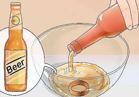 Soak copper in beer. Place the copper in an appropriately sized container and fill it with beer (or simply pour beer into your copper pot or pan.) Let it soak for at least two hours. Then pour the beer out and scrub the copper with a dampened cloth. Rinse the copper and towel it dry.