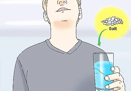 Gargle saltwater regularly as directed by your dentist. Stir 5 g (1 tsp) of table salt into 240 ml (8.1 fl oz) of lukewarm water. Gargle a small mouthful for 30 seconds, spit it out, and repeat until you’ve gargled the entire amount of water. Repeat as needed during the day, as frequently as once per hour. Follow your dentist’s precise instructions for gargling saltwater—they may want you to do it more or less frequently, use more or less salt, or to swish very gently instead of gargling for the first day or two after surgery. Saltwater has antibacterial properties, and swishing it around will also help to remove any food particles or other debris that might get caught in the sockets where your wisdom teeth used to be. Don’t swallow the saltwater. While drinking too much saltwater can cause dehydration, the main problem here is that it tastes terrible!