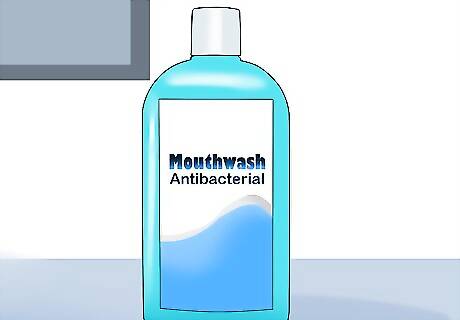 Use antibacterial mouthwash after brushing or flossing. Use a capful—around 20 ml (0.68 fl oz)—of antibacterial mouthwash, and swish it around your mouth for 30 seconds to 1 minute. Don’t swallow any of the mouthwash—spit it out. Use the mouthwash once or twice daily, ideally after brushing or flossing. Choose a mouthwash that is labeled as antibacterial, instead of a cosmetic mouthwash meant only to freshen breath. Antibacterial mouthwash can help kill bacteria in hard-to-reach spots on and around your wisdom teeth. Using mouthwash is not an adequate substitute for frequent, thorough brushing and flossing, however.