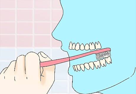 Clean your other teeth as normal, just a bit more carefully. Following your dentist’s instructions, wait 1-2 days after your surgery, then start brushing and flossing your other teeth as normal. However, make sure to keep your toothbrush and floss away from the closed wounds in the back of your mouth, and swish the water around gently in your mouth when rinsing. Your dentist may recommend that you gargle (or just gently swish around) an antibacterial mouthwash 1-2 times per day as well. You may need to keep up this more gentle dental care regimen for 1-2 weeks or more, based on your dentist's instructions and your healing process.