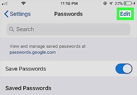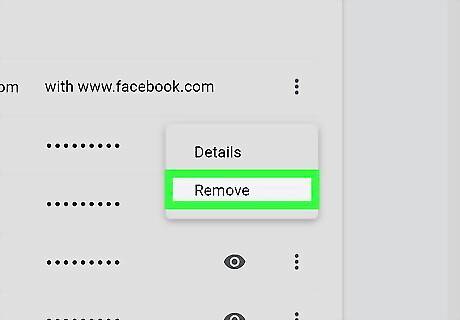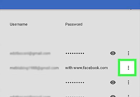 Click ⋮ next to the password you want to delete. You can search for a password by typing in the search bar at the top of the page or you can browse your saved passwords list.