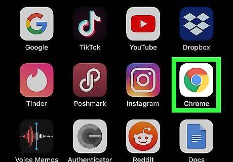 Open Chrome Android 7 Chrome. You'll find this circular red, yellow, blue, and green icon on your Home screens, in the app drawer, or by searching.