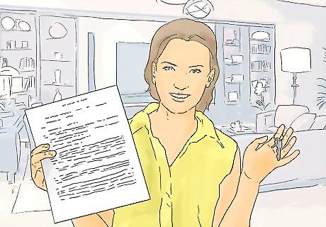 Receive your keys. After you sign all documents and pay for your closing costs, you should receive the keys to your new home. Congratulations, you are now a homeowner!