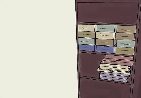 Store the comics in a safe place. A "safe place" means not just safe from prying eyes, but also somewhere safe from environmental damage. Store your comics somewhere cool, dry, and dark, away from both sunlight and fluorescent light. A closet on the main level is best, with a dry basement a good second, but an attic subject to temperature and humidity fluctuations throughout the year is the worst storage location. Keep the storage box at least 5 to 10 inches (12.5 to 25 cm) off the floor, with space around it to allow air to circulate and prevent the growth of molds and fungi.