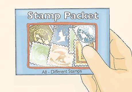Start your collection with stamp packets. Stamp dealers and hobby stores offer affordable packets containing hundreds of used stamps. These are excellent for kicking off a new stamp collection. Make sure the packet is "all-different" so you get a wide variety of stamps, not multiples of the same stamp.